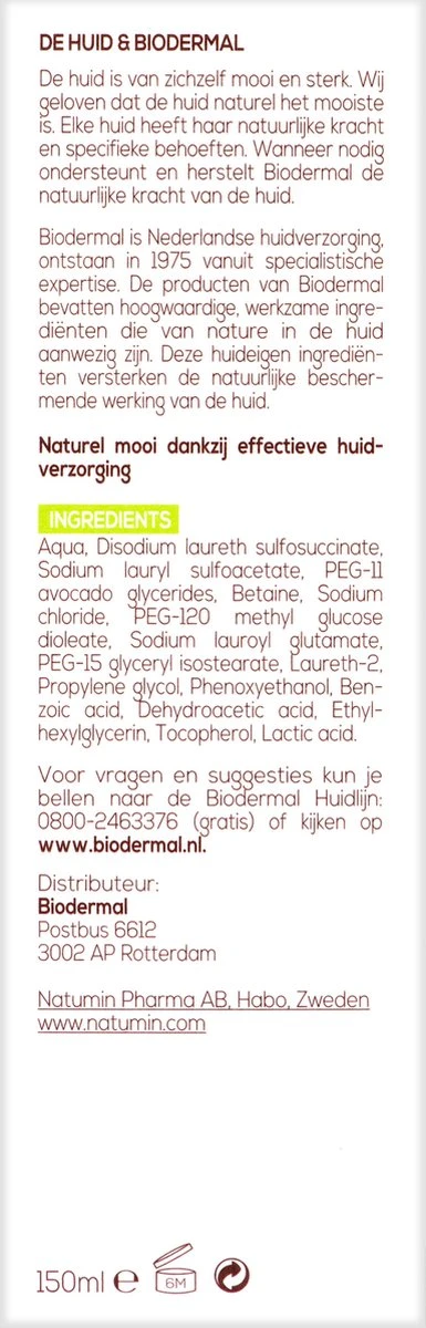 • Biodermal Reinigingslotion is een toner speciaal ontwikkeld om de huid op milde en frisse wijze te reinigen.