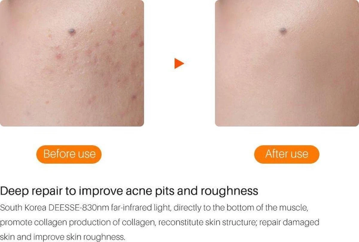 Combinatie van de rode als de blauwe fototherapie functie, nuttig om acne littekens te herstellen.