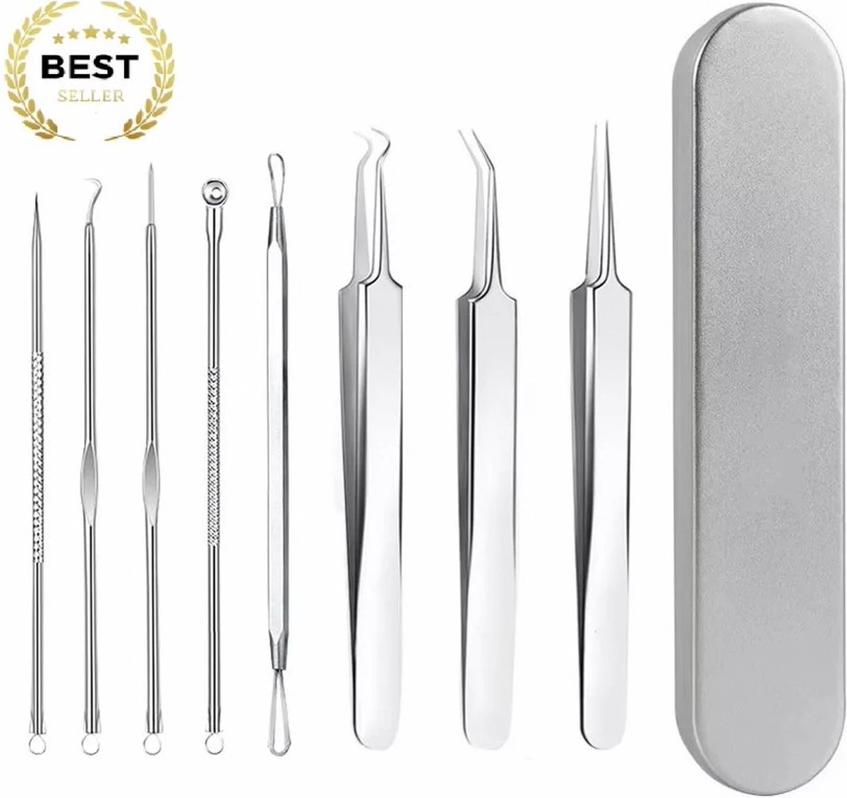De zilver kleur professionele kit met dubbelzijdige comedonenlepels helpen bij het verwijderen van puisten, acne en mee-eters in je gezicht. Hiermee voorkom je iritatie aan de huid en eventuele nieuwe onstekingen. Blackhead en puistjes verwijder je in een handomdraai.